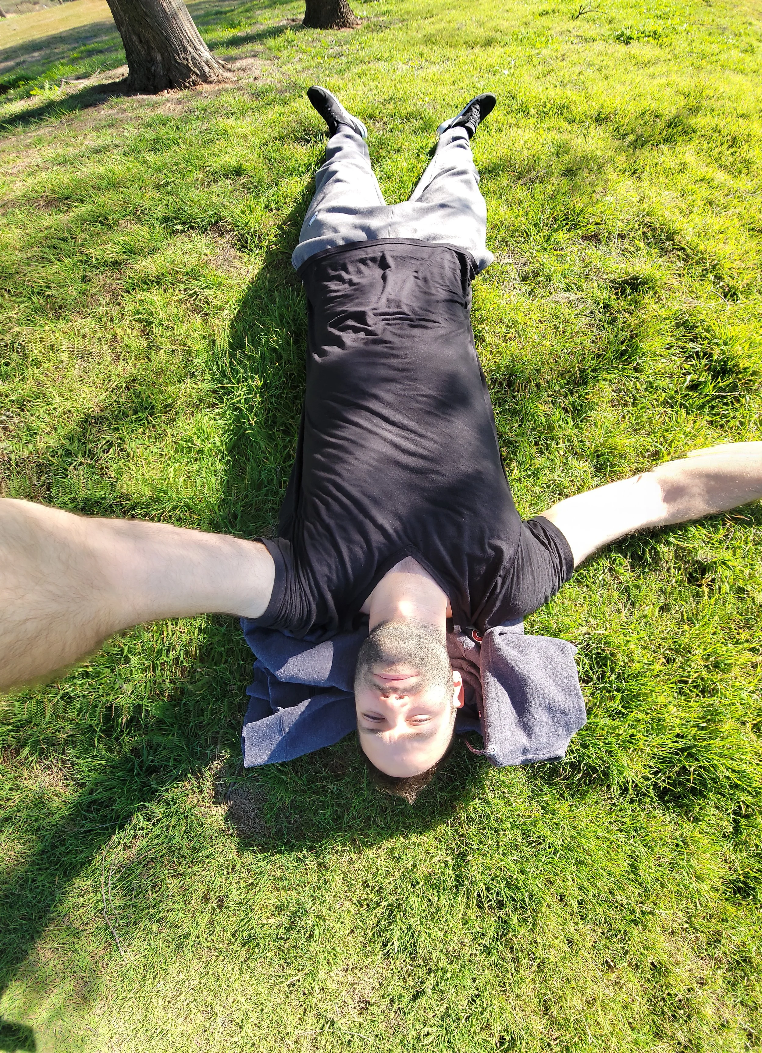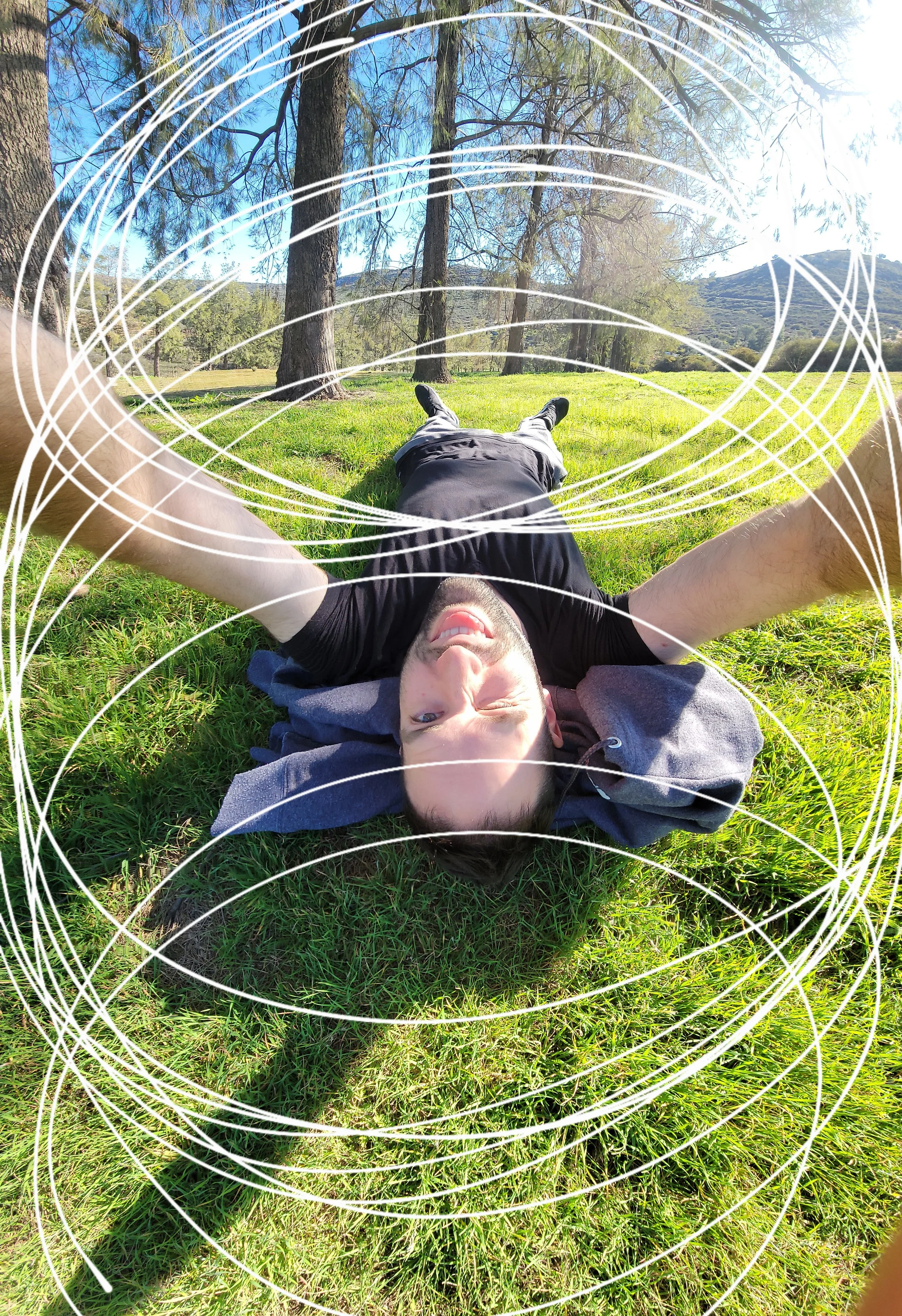 Moments of elation and contentment on a bed of grass in my back yard as Christmas nears in the warm afternoon California sun.