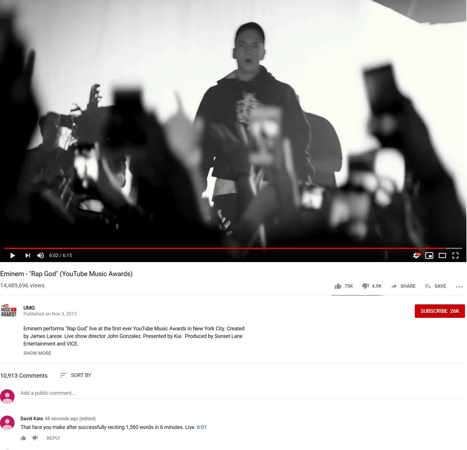 Old screenshot of me commenting on one of my all-time favorite live performances. Zero likes.
