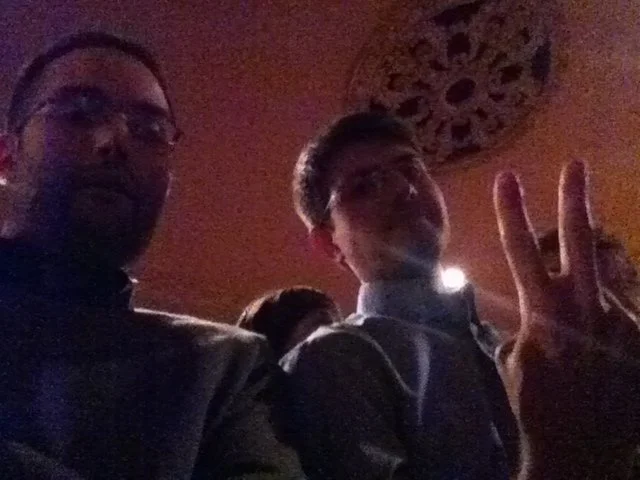 The infamous closed-eyes photo with John Waters. He visited on a book tour promoting it with a free retrospective. If you wanted to take a photo or get a signature, you had to buy his book. After waiting an hour in line, we got this. Rating: 3 out of 5 (for comedic effect)