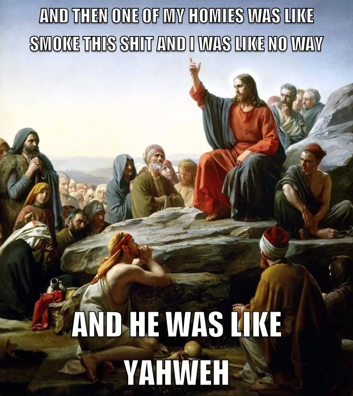 I made this meme in honor of Easter landing on 4/20 that year. I remember sending it to my friend Carter. It made him cry. With freaking laughter.