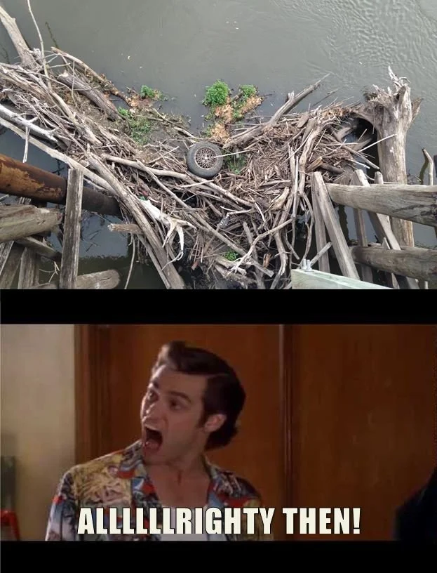 I made this meme in honor of this great bridge design that clearly allows natural water flow. And always nice to spot a tire in our rivers!